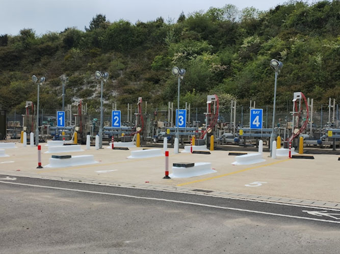 The Portsdown Hill facility was designed and built with four operational stanchions with one in reserve for maintenance, however the site can accommodate five tankers simultaneously downloading at 1,200m³ per hour.